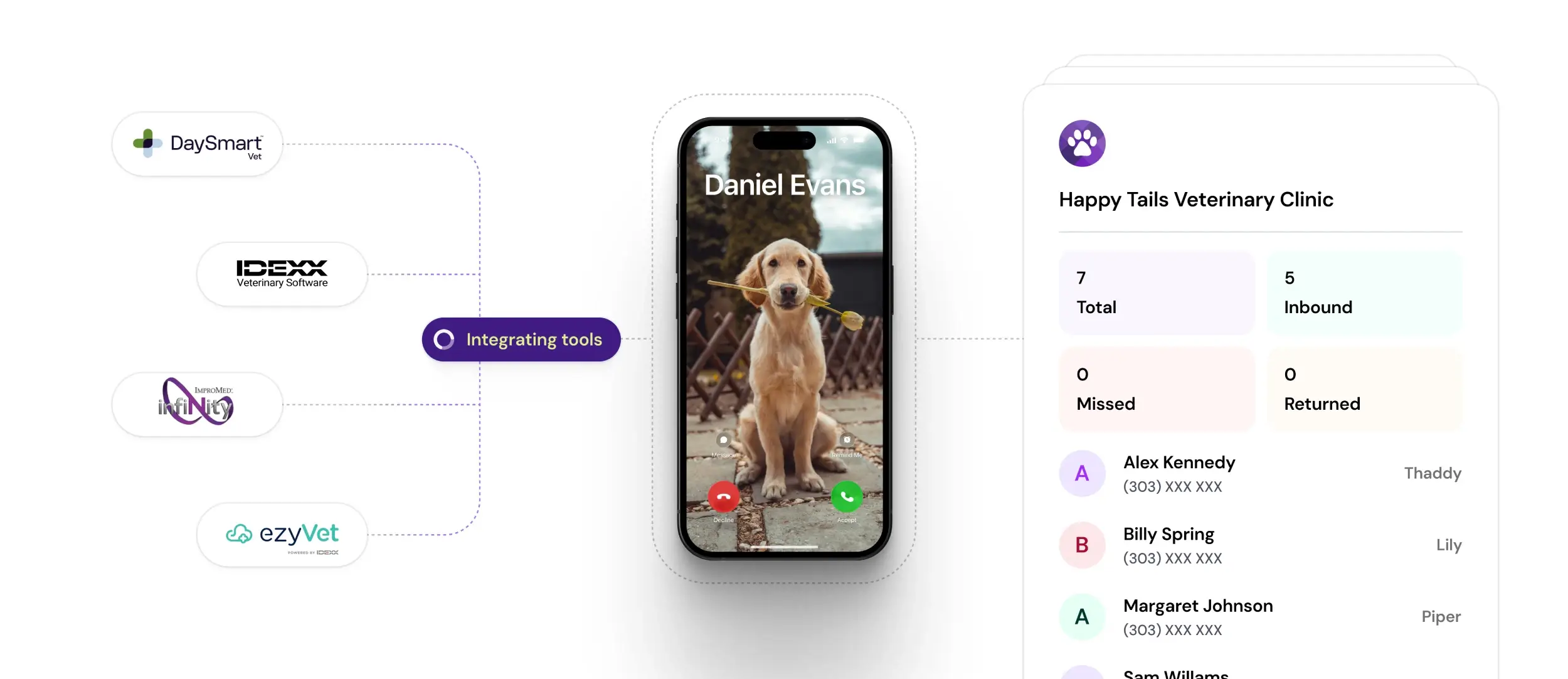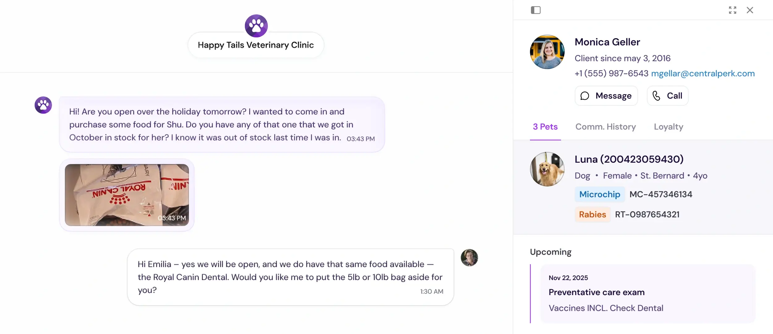 Use two-way texting and mass messaging to easily engage with pet owners, and speed up your phone calls with a direct PIMS integration.