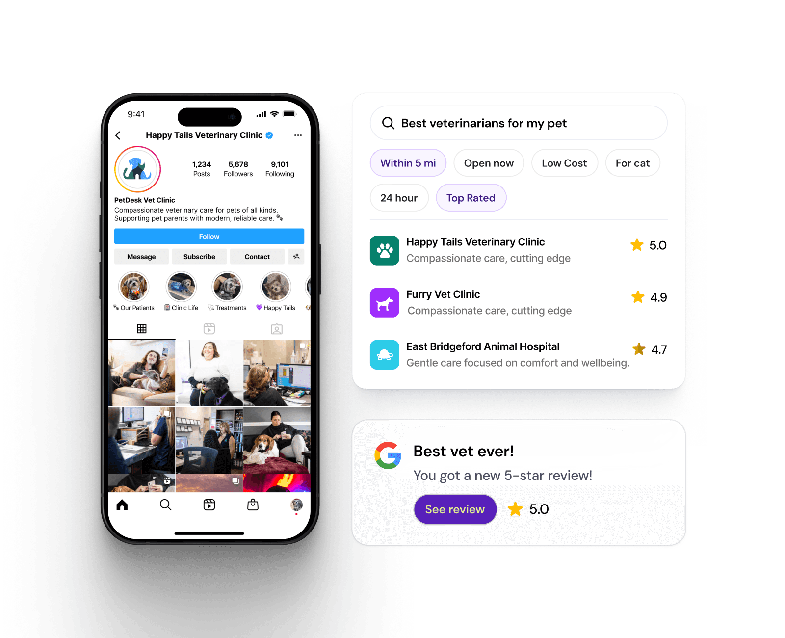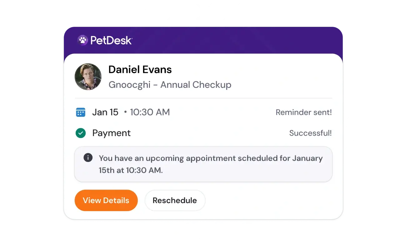 Reduce calls by 50%, automate reminders and let pet parents schedule appointments, complete forms, request prescription refills, and much more online or in the app.