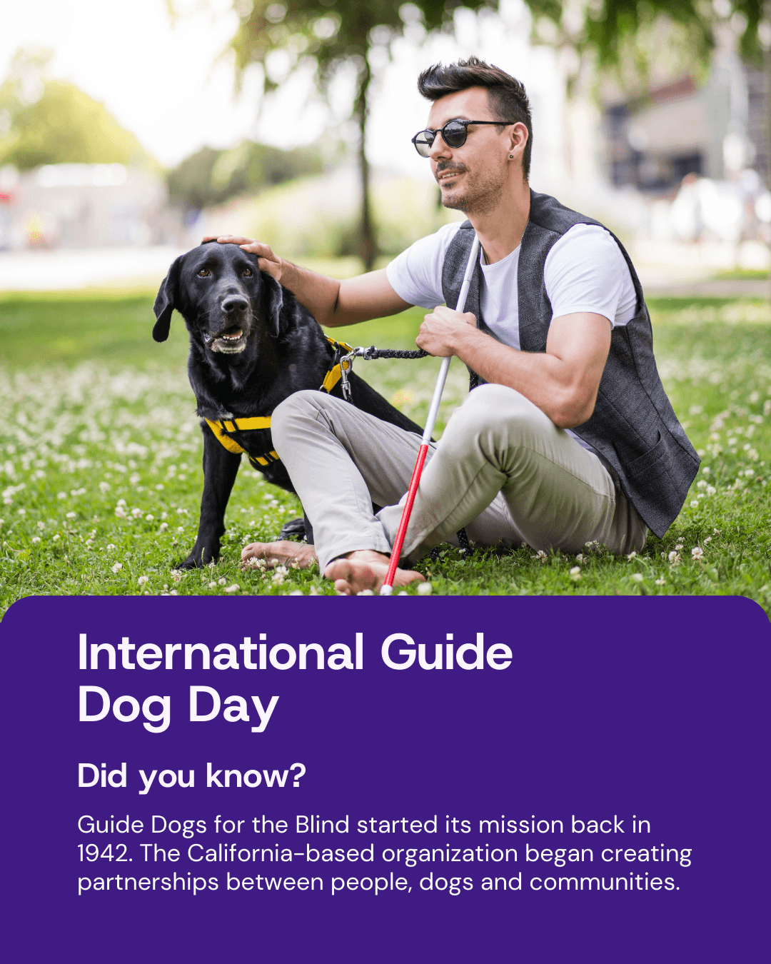 13. International Guide Dog Day: April 29th honors the focused work that guide dogs accomplish around the globe each day. Let your community know interesting facts such as the origin of guide dogs, as well as the importance of their role in assisting people in need to live their lives in the most comfortable ways possible.