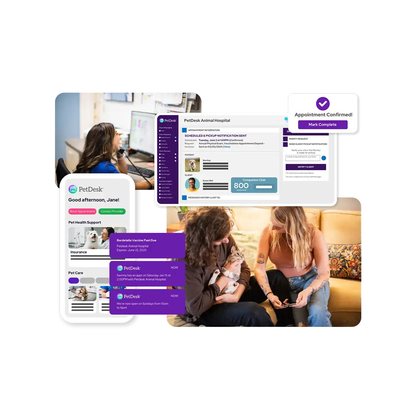 Whether you’re purchasing one or more solutions, you’ll have a dedicated PetDesk team member through each stage of your journey—sales, onboarding, training, and continuous support! That means by your side, always.