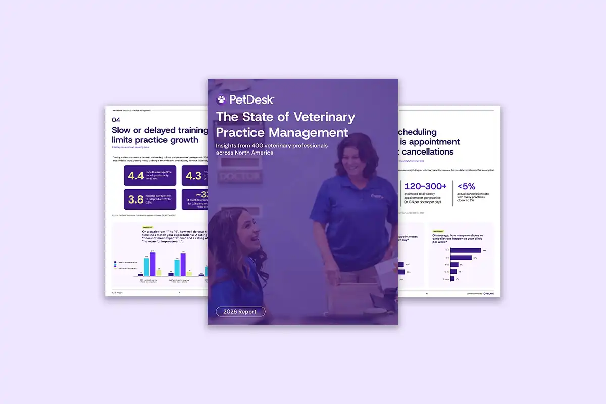 PetDesk conducted new research to better understand the operational, staffing, technology, and growth challenges facing veterinary practices today. We surveyed 400 veterinary professionals across North America to explore their views of practice operations, staffing and training, technology adoption, appointment management, profitability pressures, and client acquisition and retention.